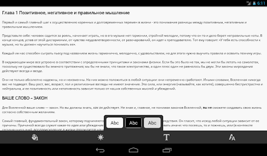 При нажатии на экран внизу появится меню книжки.