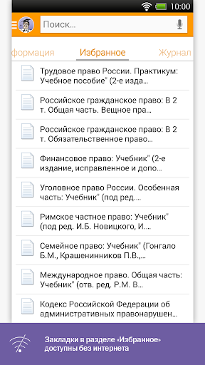 Для работы без доступа в интернет можно заранее поставить закладки на любой документ или его часть. Документы с закладками сохраняются в разделе «Избранное».