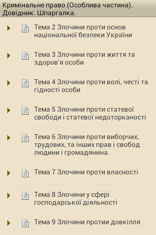 Цей додаток це зручний інструмент для кожного студента та юриста котрий допомогає у підготовці до сеемінарських зайнять з Кримінального права, а також під час контрольних та модульних робіт, іспитів.