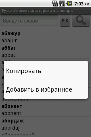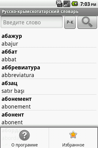 Поддерживает перевод в обоих направлениях, то есть возможно изучить, как русский, так и крымскотатарский языки.