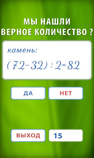 В тренажёре представлены арифметические операции сложение, вычитание, умножение и деление. По выбранной операции необходимо выполнять цепочку задач. Для каждой задачи предлагается один правильный ответ среди шести неправильных. За правильный ответ будет начислен один балл, а за неправильный будет снято три балла.