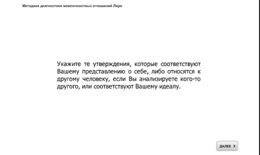Методика создана Т. Лири (Т. Лиар), Г. Лефоржем, Р. Сазеком в 1954 г. и предназначена для исследования представлений субъекта о себе и идеальном "Я", а также для изучения взаимоотношений в малых группах. С помощью данной методики выявляется преобладающий тип отношений к людям в самооценке и взаимооценке.