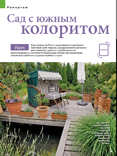 «Мой прекрасный сад» - самый популярный в Европе журнал для садоводов. В этом интерактивном специальном приложении для планшетных ПК мы собрали наиболее актуальную информацию об оформлении садовых участков. Здесь вы найдете советы, как гармонично сочетать растения, строения, мебель и аксессуары, чтобы отдельные элементы слились в единое целое и чтобы ваш сад превратился в прекрасную комнату под открытым небом. Этот журнал для тех, кто хочет сделать свой сад уникальным и неповторимым!
