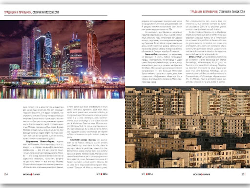 Издание «Москва — Париж» для тех, кто хочет узнать настоящую столицу Франции — живую, любящую, фантастически разнообразную. И для тех парижан, которые хотят открыть для себя Москву. Закройте путеводители! Мы покажем самые сокровенные уголки великого города, расскажем реальные и самые захватывающие истории о его обитателях, проведем за кулисы «Мулен Руж» и заглянем на кухни мишленовских ресторанов. В разделе «Стиль жизни» — не только адреса самых модных ресторанов, но и координаты заведений, где любит ужинать Франсуа Олланд и прочий парижский бомонд. В рубрике «А-ля франсе» наши авторы-россияне, прижившиеся на родине круассана, расскажут о местных условиях быта, обычаях, привычках галлов, учебе и работе, кредитах и налогах. Может быть, даже удастся развеять миф, что французы лояльны к изменам и жуткие снобы. Журнал попробует объяснить, как им удается оставаться такими стройными, несмотря на любовь к длинным ужинам. В рубрике «Винтаж» — Париж Сергея Дягилева, Шарля Азнавура и Эдит Пиаф. Наши звездные гости в рубрике «Рандеву» расскажут о своих впечатлениях о самой романтичной столице мира, поделятся адресами любимых театров и музеев, магазинов и кафе.