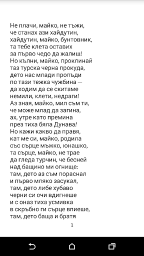 За да ползвате приложението не е необходимо да сваляте допълнителен четец. Всяко произведение е самостоятелна апликация. Вие преценявате кое от тях да оставите на телефона си или кое да изтриете. Целим да дадем възможността на хората да разполагат с библиотека от любимите си български произведения.