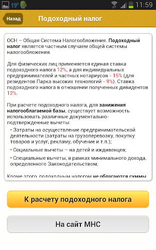 Это небольшое приложение бизнес-калькулятор, который позволяет быстро и просто рассчитывать налоги для всех существующих систем налогообложения, согласно действующему законодательству Республики Беларусь. Если Вы – предприниматель, то «Налоги Беларуси» - это то, что Вам нужно! Теперь Вы всегда сможете узнать, какую сумму налогов Вам необходимо уплатить.