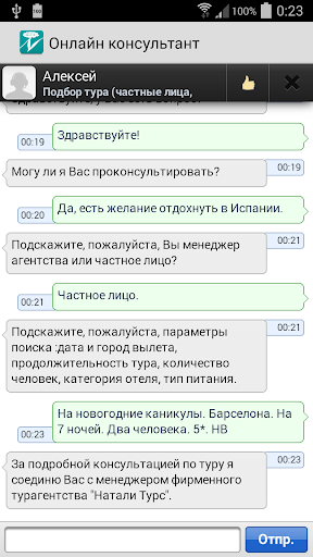 - онлайн-чат с операторами Натали Турс;