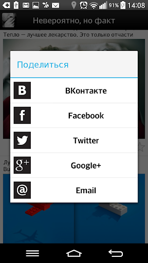 Устанавливайте приложение и делитесь с друзьями в социальных сетях: Вконтакте, Facebook, Google+, Twitter и Email.