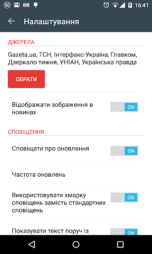 - український та російський інтерфейс (у випадку, якщо матеріали на сайті-джерелі представлені двома мовами, у додатку вони відображаються мовою інтерфейсу).