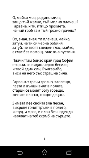 За да ползвате приложението не е необходимо да сваляте допълнителен четец. Всяко произведение е самостоятелна апликация. Вие преценявате кое от тях да оставите на телефона си или кое да изтриете. Целим да дадем възможността на хората да разполагат с библиотека от любимите си български произведения.