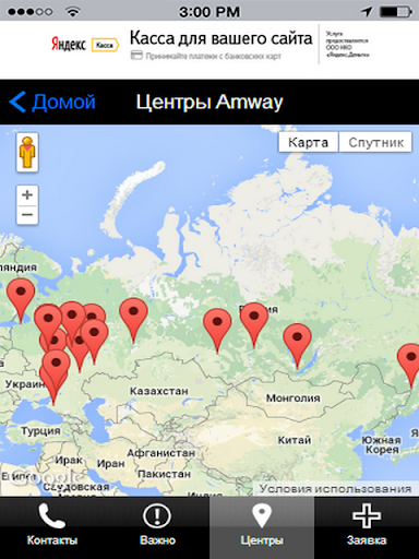 Так же в приложении имеются расположения торговых центров Amway в России.