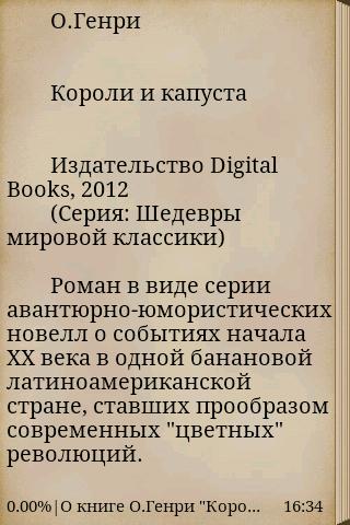 Издательство Digital Books занимается популяризацией произведений классической литературы и поддержкой начинающих авторов. Мы выпускаем книги в виде приложений для мобильный устройств на базе операционной системы Android. Для удобства чтения в книгах реализовано листание страниц как в бумажных изданиях. С помощью простого меню каждый читатель может настроить отображение книги под характеристики своего устройства.