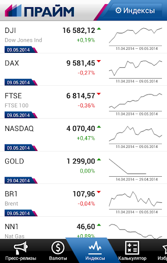 Информация в режиме он-лайн о движении индексов крупнейших мировых бирж и торговых площадок