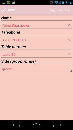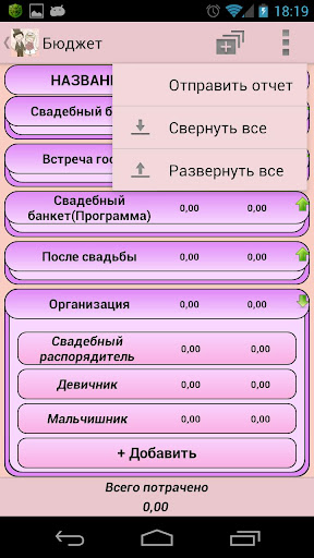 В приложении уже есть готовый список затрат и дел, а также вы легко можете добавить то, что не нашли или удалить, что не нужно. Вы также можете легко отправить на почту информацию из приложения. Кроме того, при работе с приложением вы легко можете позвонить своему помощнику или гостю прямо из приложения.
