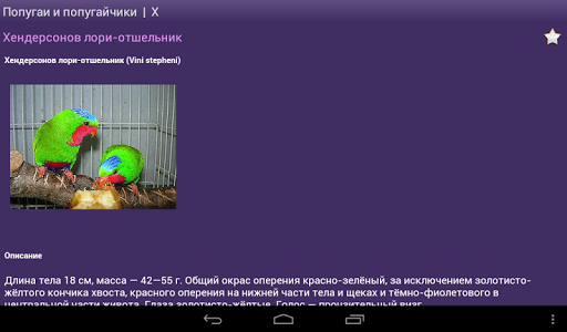 Попугаи и попугайчики бесплатный справочник с картинками и описанием, все про попугаев. Справочник работает в режиме ОФФЛАЙН и не требует интернет-соединения для работы.