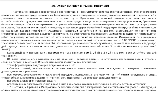 "Правила безопасности при эксплуатации контактной сети и устройств электроснабжения автоблокировки железных дорог ОАО "РЖД"