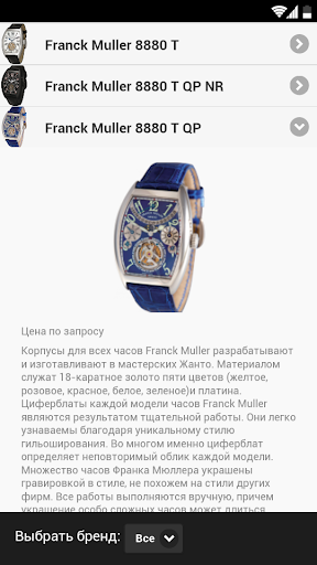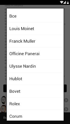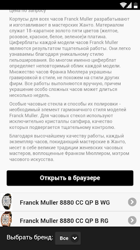 Мы постарались сделать приложение максимально простым. Новости мира часов отображаются в виде ленты. Предусмотрена возможность выбора интересующего бренда. При желании, можно отобразить описание модели, а так же "кликнуть" на ссылку, перейти на страницу сайта с подробной информацией об интересующей модели.