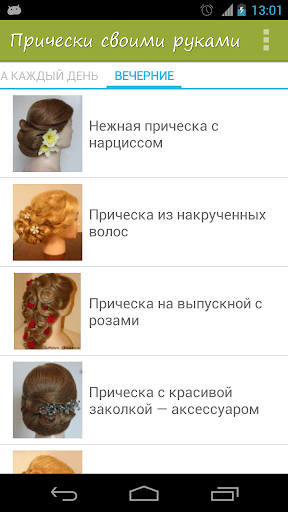 Прически в приложении разбиты на две категории: прически на каждый день и вечерние прически.
