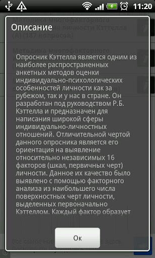 Вашему вниманию предоставляются "Профессиональные психологические тесты"! Данные тесты составленные профессиональными психологами. Психологические тесты позволят Вам лучше узнать психологическое состояние себя и своих близких. Качество теста обеспечивается многоступенчатой процедурой проверки и стандартизации его шкал. В приложении присутствуют следующие психологические тесты, методики и опросники есть: