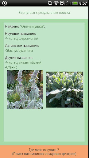 (вам было известно название «Овечьи ушки», вы выяснили с помощью приложения «Растения», что это растение официально называется «Чистец шерстистый»).