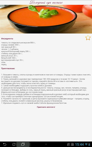 Вы также сможете выбирать понравившиеся рецепты и сохранять рецепты в Избранное. Приложение не требует обязательного подключения к интернету и понравившиеся рецепты всегда буду с Вами, даже когда Вы off-line!