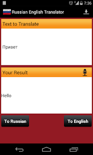 Очень простой и удобный способ для России в переводе на английский язык и с английского на русский язык. Приложение можно использовать в качестве Русско-английский словарь тоже.