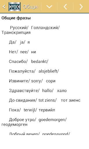 Русско-голландский разговорник. Предположим, вы приехали в другую страну и совершенно не владеете местным языком. Для того, чтобы проще общаться за рубежом и чувствовать себя как дома, предлагаем пролистать перед поездкой разговорник. В данном разговорнике вы найдете общие фразы и фразы на темы гостиница, магазин (покупки), транспорт, экстренные случаи, ресторан.