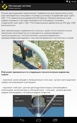 Приложение разработано для обучения специалистов сварочного производства, занятых выполнением подготовительных, сборочных и сварочных работ с применением ручной аргонодуговой сварки неплавящимся электродом кольцевых, угловых сварных соединений труб, соединительных деталей и узлов трубопроводов.