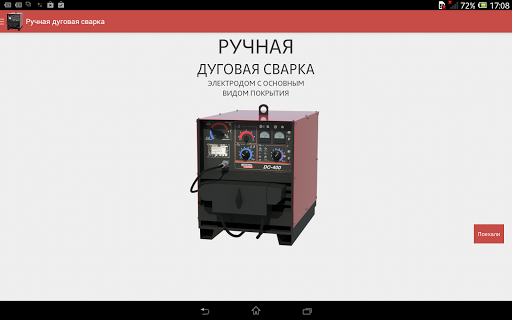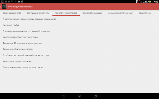 Приложение разработано для обучения специалистов сварочного производства, занятых выполнением подготовительных, сборочных и сварочных работ с применением ручной дуговой сварки электродом с основным видом покрытия, угловых сварных соединений труб, соединительных деталей и узлов трубопроводов.