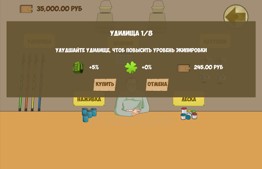 В магазине вы можете улучшить всю экипировку для рыбалки. Покупайте и используйте