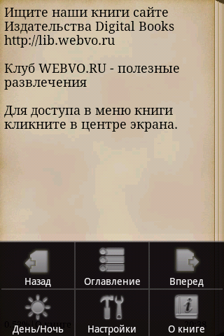 Если Вы начинающий автор и хотите увидеть свое произведение в виде приложения для мобильных устройств на базе операционной системы Android, то обращайтесь в издательство Digital Books (webvo@webvo.ru или webvoru@gmail.com)