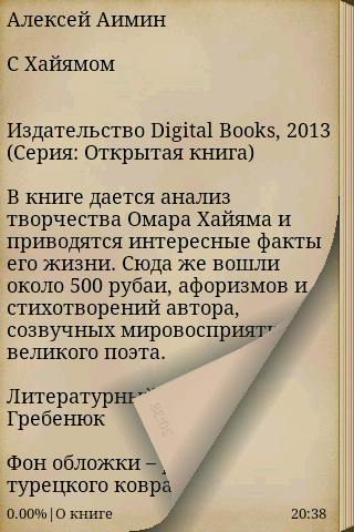 Издательство Digital Books занимается популяризацией произведений классической литературы и поддержкой начинающих авторов. Мы выпускаем книги в виде приложений для мобильный устройств на базе операционной системы Android. Для удобства чтения в книгах реализовано листание страниц как в бумажных изданиях. С помощью простого меню каждый читатель может настроить отображение книги под характеристики своего устройства.