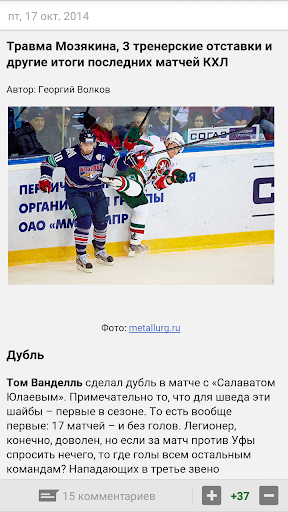 - Текстовые онлайн трансляции матчей, календарь чемпионата и турнирные таблицы дивизиона, конференции и плей-офф: