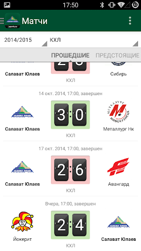 - Полная статистика всех матчей ХК “Салават Юлаев” во всех турнирах в режиме реального времени, а также статистика игроков;