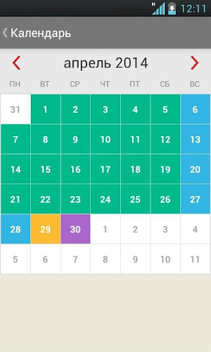 - цветовое обозначение периодов записей