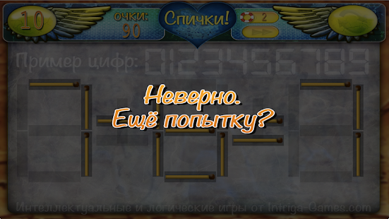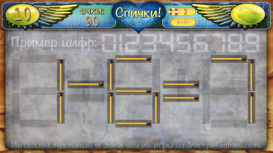Спички (Math Matches) - это простая логическая игра, представляющая головоломки со спичками. По типу тех, что все, наверное, видели по телевизору. Вам даётся неправильное равенство, которое необходимо исправить на правильное переместив, всего лишь, одну спичку. Таким образом, цель игры: переставить одну спичку так, чтобы получилось верное равенство (в простейшем математическом примере).