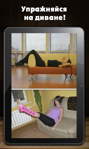 Если у Вас нет времени посещать спортзал или он находится очень далеко от дома – не расстраивайтесь это приложение покажет, как можно заниматься даже не вставая с дивана.