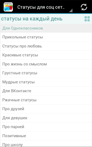 Наше приложение собрало в себе все самые новые статусы для социальных сетей 2015 года, самые прикольные статусы для вас!