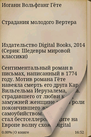 Издательство Digital Books занимается популяризацией произведений классической литературы и поддержкой начинающих авторов. Мы выпускаем книги в виде приложений для мобильный устройств на базе операционной системы Android. Для удобства чтения в книгах реализовано листание страниц как в бумажных изданиях. С помощью простого меню каждый читатель может настроить отображение книги под характеристики своего устройства.