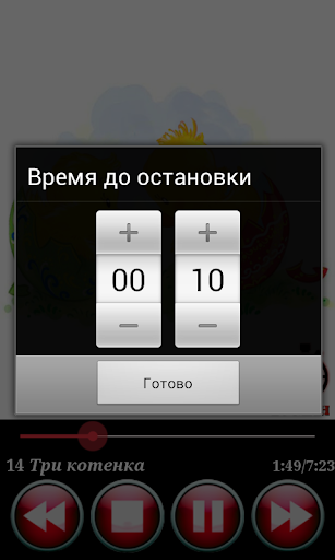 Также в приложении предусмотрен таймер времени для отключения воспроизведения сказок. Им очень удобно пользоваться, когда необходимо уложить ребенка спать.