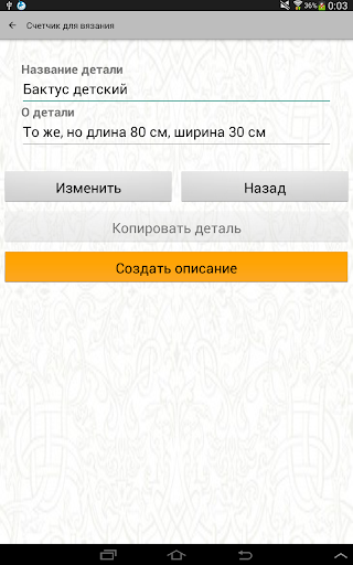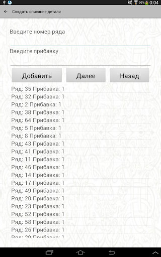 Если хотите, вы можете вязать с подсказками. Для этого создайте собственное описание детали: один раз введите количество петель и рядов, виды вашей пряжи и узоров, прибавки петель и убавки, а потом просто вяжите, а счетчик сам будет напоминать вам, что нужно делать и в каких рядах.