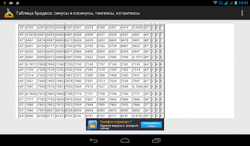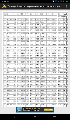 Простая таблица Брадиса не заменимая вещь для школы которая позволит легче решать тригонометрические задачи и примеры.