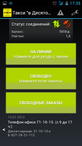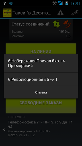 Программа для водителей такси "В Десяточку" г.Тольятти. Служит для принятия заявок.