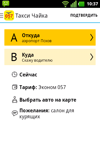 Приложение работает быстро, заказ такси оформляется в несколько кликов.