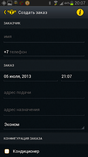 д) возможность самостоятельно указать дополнительное оборудование, которое в данный момент доступное водителю (терминал оплаты картами, детское кресло с конкретным возрастом ребенка и т.д.).