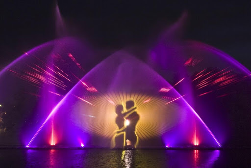 Використання лазерного проектора з екраном, що складається з водно-повітряної суміші, що розподілена по всій довжині фонтану дозволяє демонструвати на фонтан відео у форматі 3D.