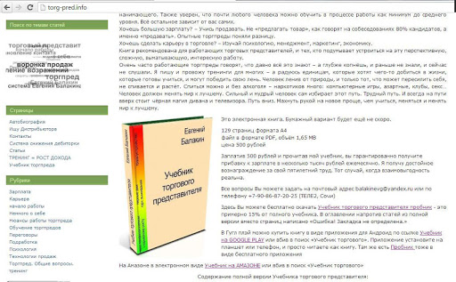 Это - пробник "Учебника торгового представителя", сам учебник можно купить в бумажном виде по ссылке https://www.createspace.com/4984725 или в виде приложения Андроид по этой ссылке: https://play.google.com/store/apps/details?id=com.appmk.book.AOUWKFFZPEHITTPMM или набрав в поиске Гугл плэй "учебник торгового".