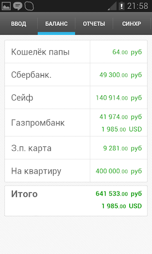 - Возможность вести домашнюю бухгалтерию в многопользовательском режиме.
