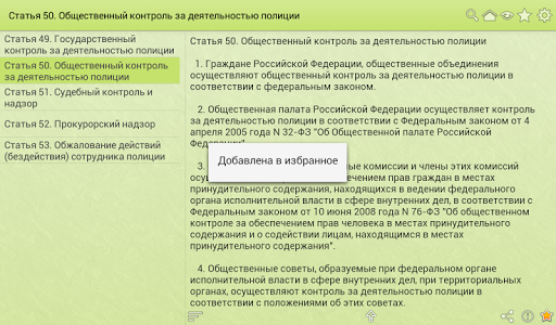 5. Возможность листать/просматривать (свайпом) статьи, всего закона целиком.