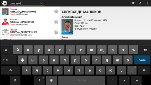 - мгновенный интеллектуальный поиск (по стране, клубу, ФИО, одновременно или по частям, или по кусками);